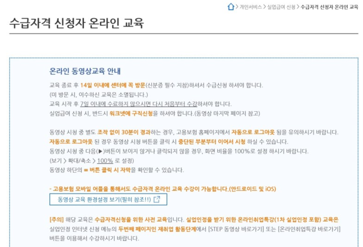 - 교육을 이수하지 않을 경우 실업급여 신청이 거부될 수 있습니다.